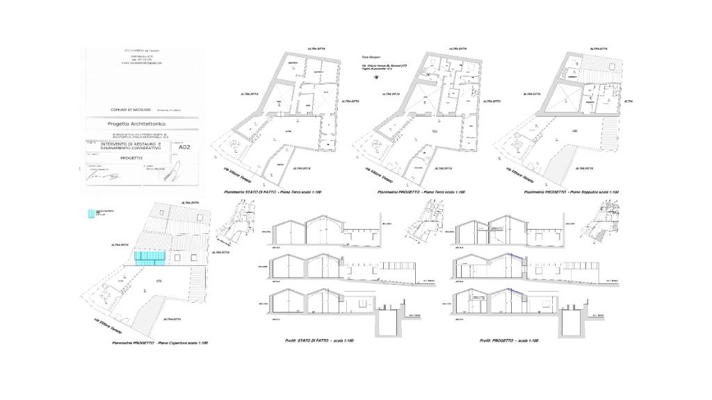 - Tavole progettuali in scala (stato di fatto, progetto, sezioni) per tutte le unità edilizie